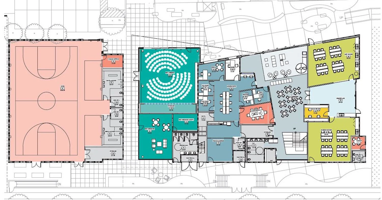 We began the design process for Pressman Academy, a Private Jewish Middle School, with a series of meetings with the teachers, the administration, and the temple leaders and community. Through these meetings, the conceptual intent for the school was formed: a contemporary learning environment filled with maker and collaboration spaces, and incorporating a gathering space for the community.
